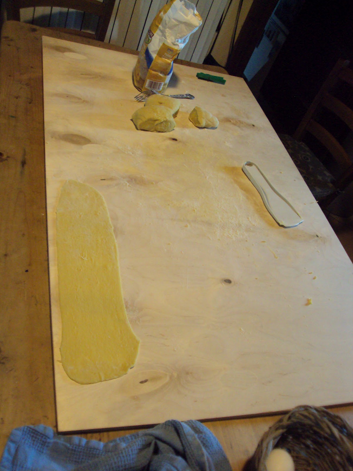 *The thing about flour–in Italy, there is actual legislation and such about the types of flour restaurants and commercial pasta-makers can use so that it’s legit. You can use regular flour for this, but the best flour to use is farina di grano duro, or durum wheat semolina flour. Sometimes it’s sold in stores with the label “pasta flour.” If you have an Italian food store or the like in your city, that’s your best bet for finding good flour. Otherwise, all-purpose flour should be fine with egg pasta. I’m afraid I don’t know yet how to make gluten-free pasta, but when I do, I”ll be sure to share it with everyone. 🙂